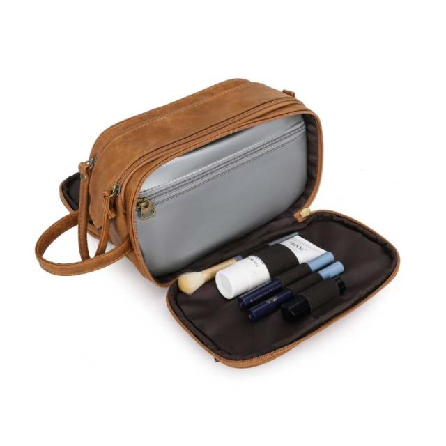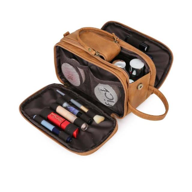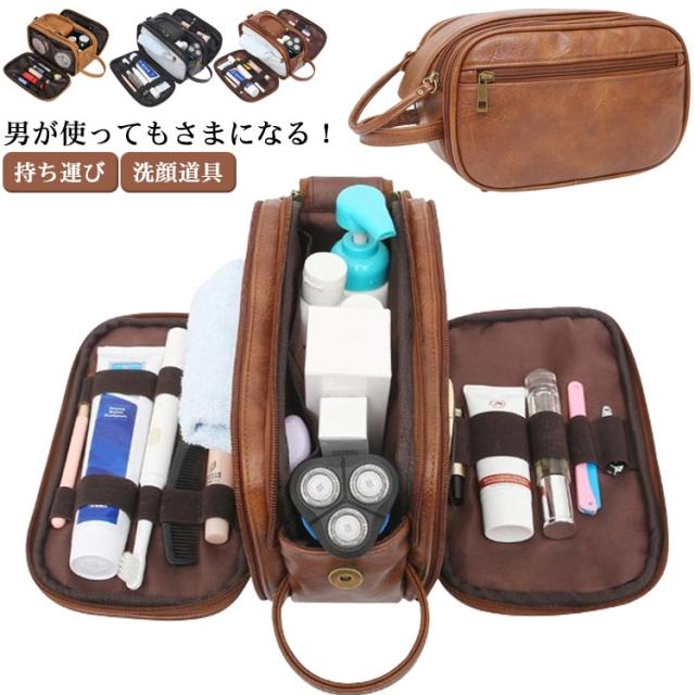 旅行 コスメポーチ 小物入れ マチ付き メンズ 大きめ 大容量 仕切り ブラシ バニティポーチ メイクポーチ メイク 持ち運び 収納 ケース おしゃれ 旅行用 収納袋 トラベルポーチ 自立 洗顔道具 レザー