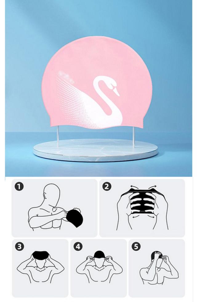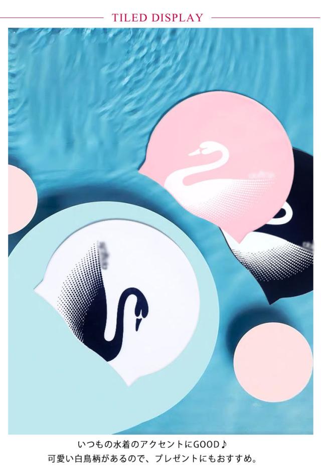 | 縦にも横にも伸びやすく、頭にフィットして快適な被り心地◎ロングヘアにもラクラク。 ロングヘアもすっぽり収納できるスイムキャップ 着脱が簡単で、耐塩素性に優れ、耐久性も抜群です。 水中ウォーキングなどのトレーニングや、キッズスイミングの付き添い、ベビースイミングなど、普段のプールで大活躍! いつもの水着のアクセントにGOOD♪可愛い白鳥柄があるので、プレゼントにもおすすめ。 | |