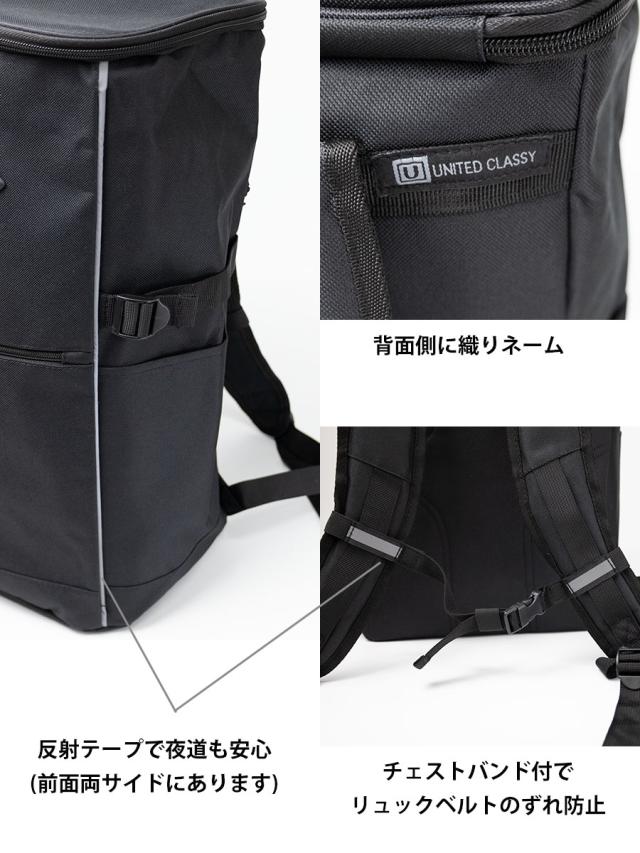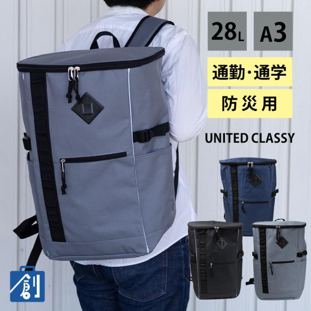 リュックサック メンズ b4 a3 28l 防災リュック 単品 スクエアリュック 大容量 ボックス デイパック バックパック ブランド 通勤 通学 ビジネス 黒 紺 グレー シンプル UNITED CLASSY ユナイテッドクラッシー 8254