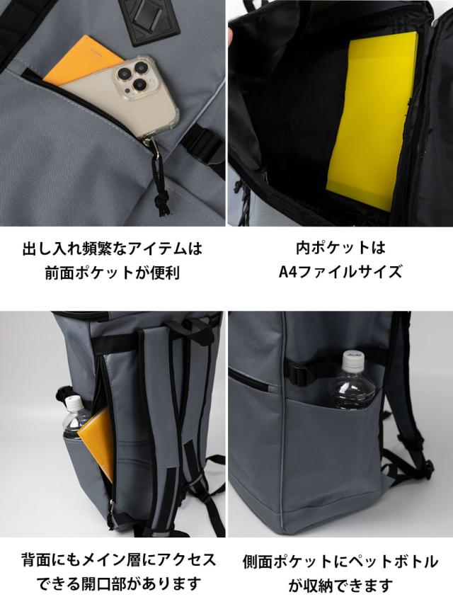 ■蓋の様に上部から出し入れするスマートなスタイルで人気のスクエア型のリュックです。A3ファイル対応 約28Lの大容量タイプです。