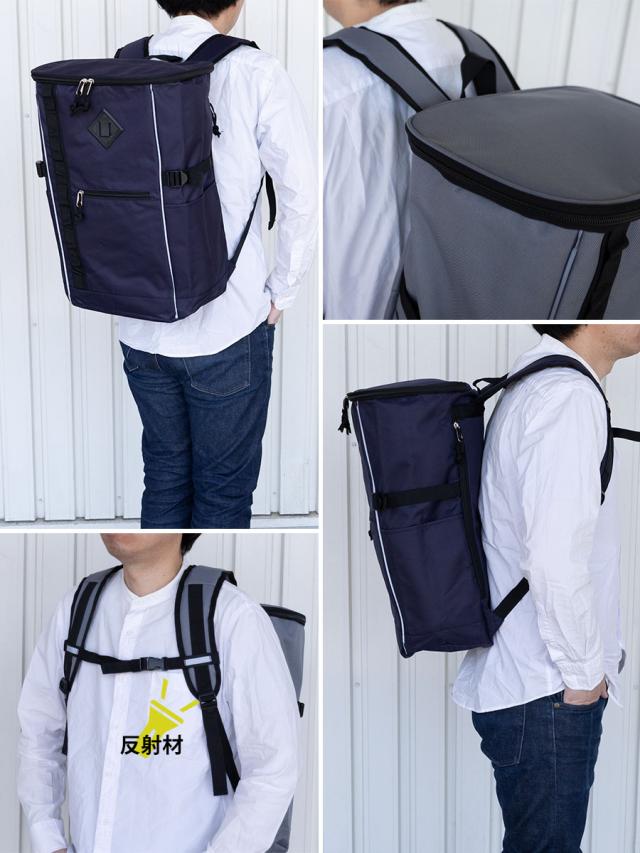■蓋の様に上部から出し入れするスマートなスタイルで人気のスクエア型のリュックです。A3ファイル対応 約28Lの大容量タイプです。 ■前面と、リュックベルトの前面側に反射材がついているので夜道の安全対策になります。チェストバンド付きで快適にお持ちいただけます。 ■前面のファスナー開閉ポケット内部には鍵等を付けられるフックがついています。 ■シンプルなデザインで通勤・通学などデイリー使いから、災害時の避難用グッズを用意した防災リュックにもお勧めです。カジュアルになりすぎないカジュアルリュックです。 |