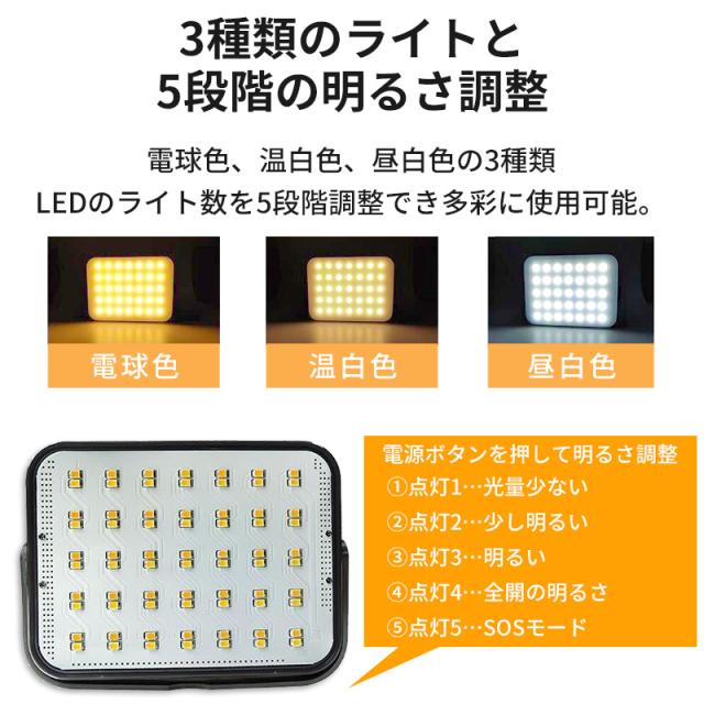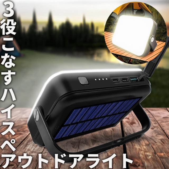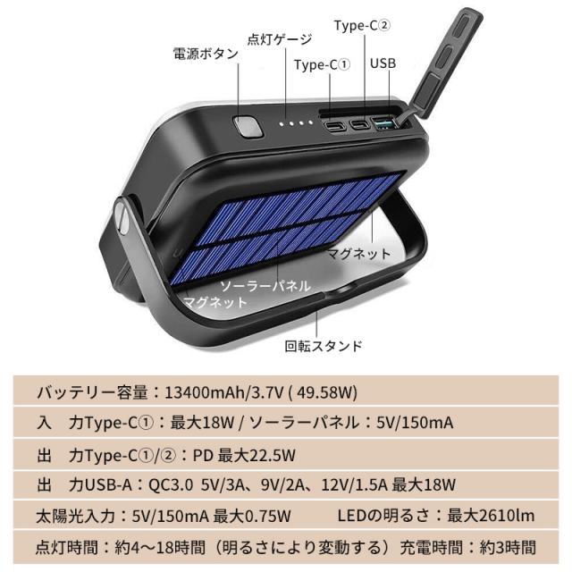 ソーラー充電 LEDライト モバイルバッテリー機能付き 13400mAh 非常用 小型 ポータブル バッテリー