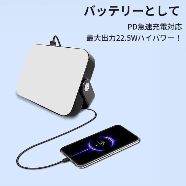 Type-CとUSBポートを備えているため、モバイルバッテリーとしても利用できます。