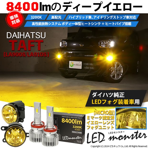 ピカキュウ,LED専門店ピカキュウ,ピカキュウledフォグ,ガラスレンズ付,フォグユニット,フォグランプ,ハロゲンフォグランプ,前部霧灯,ダイハツ車対応,DAIHATSU,純正LEDフォグと交換,クリアレンズ,フォグユニット,イエローレンズ,ガラスレンズ,H8対応,H11対応,H16対応,L8400,LED MONSTER,LEDモンスター,8400lm,イエロー,タフト,TAFT,LA900S,LA910S