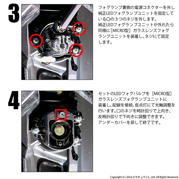 純正LEDフォグと交換できるピカキュウのオリジナルフォグランプユニット。