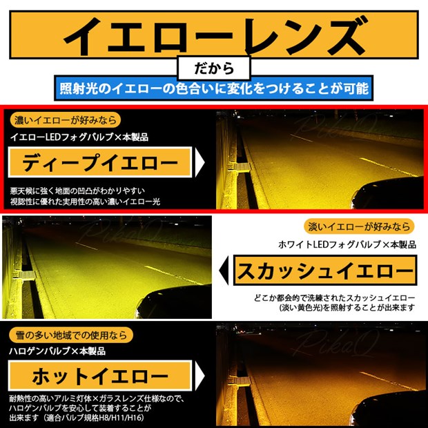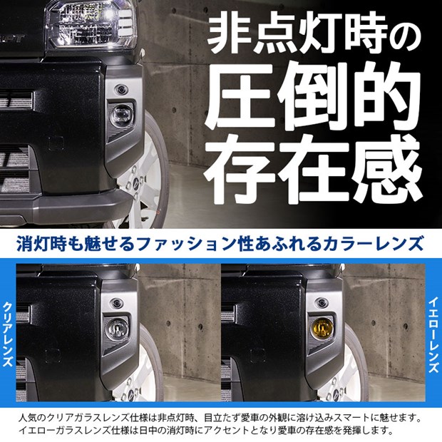イエローレンズだから日中の消灯時でも愛車の存在感を更にアップさせます。