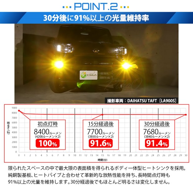 ※ルーメン値は、バルブ2個(車両一台分)の値を示しています。