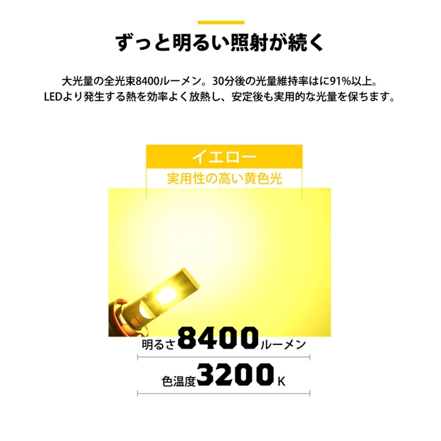 全光束:8400lm LEDカラー:イエロー 3200K バルブ規格:H11(H8/H11/H16共通)