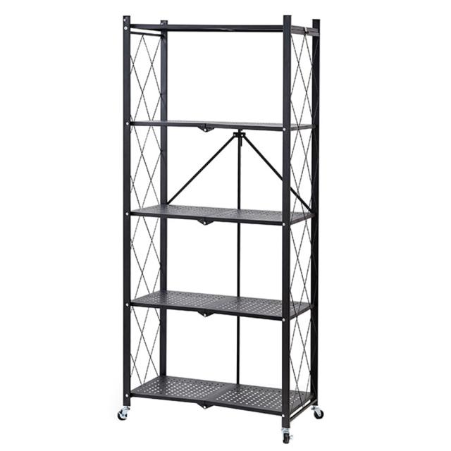 スチールラック 5段 スチール メタルラック スチールシェルフ ワイヤーラック メタルシェルフ ブラック 黒 折り畳み 折りたたみ 食器棚 収納棚 レンジ台 キッチンラック ラックオープンラック