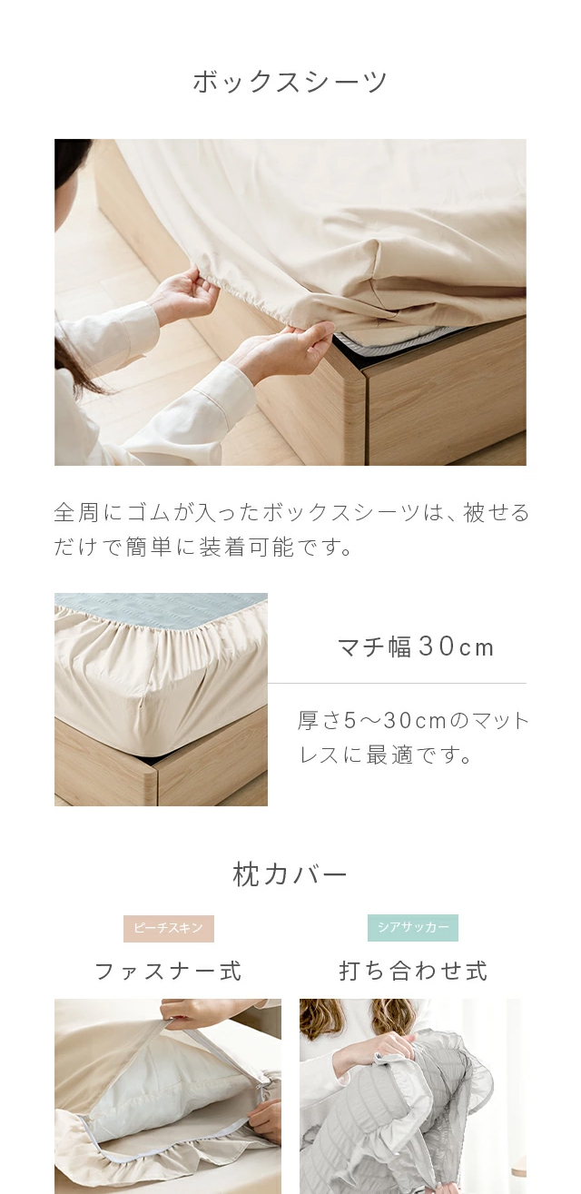 ボックスシーツ:約 120×200cm+30cm(1枚)