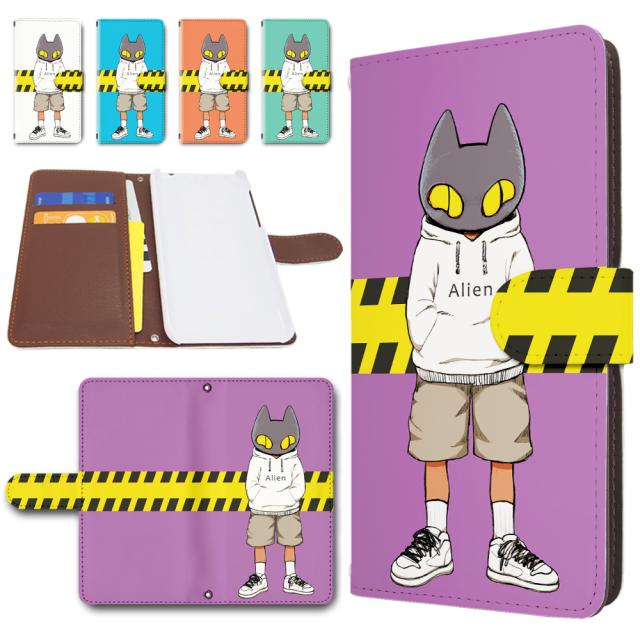 Huawei P30 ケース 手帳型 カメラ穴あり キャラクター ネコ エイリアン かわいい 猫 ねこ おしゃれ p30ケース huaweip30 スマホケース手帳型 手帳 カバー ファーウェイp30 ふぁーうぇいp30 ハーウェイp30 はーうぇいp30