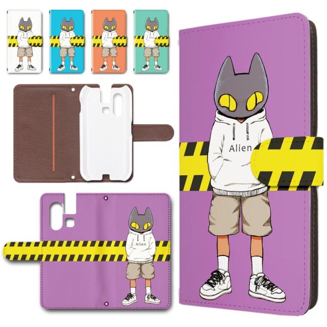 mamorino6 ケース 手帳型 カメラ穴あり キャラクター ネコ エイリアン かわいい 猫 ねこ おしゃれ mamorino6 カバー shf35 au キッズケータイ スマホケース マモリーノ6 ケース 手帳ケース 手帳 まもりーの6 けーす 子供用