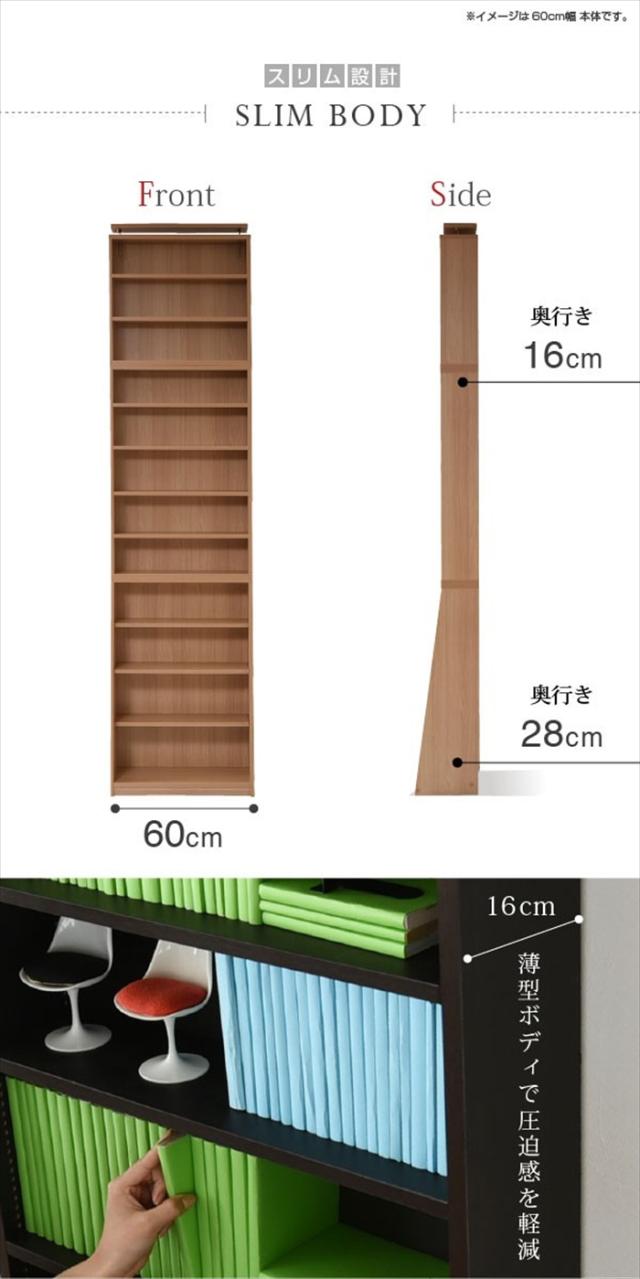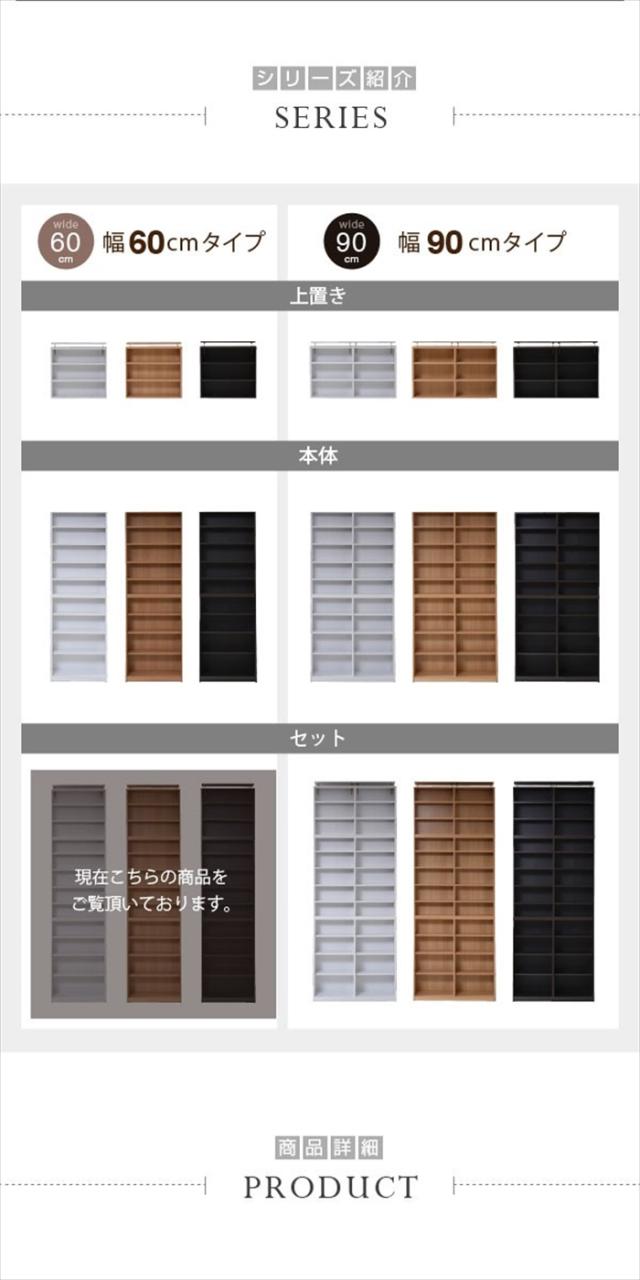 文庫本ラック 幅60 上置きセット 書棚 壁面収納 つっぱり 木製 本収納 漫画 CD DVD 1cmピッチ 薄型 大容量