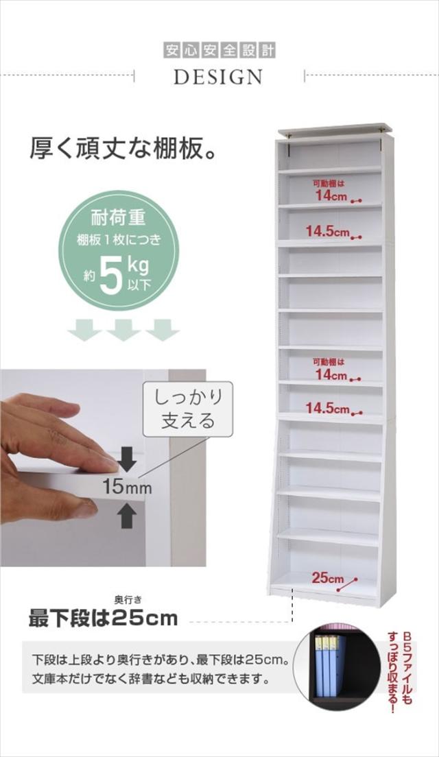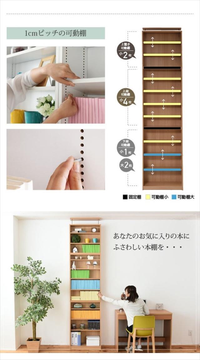 キーワード: 60cm H240 壁面収納 天井 つっぱり 上置き 上置 ツッパリ 突っ張り 1cmピッチ本棚 文庫 本棚 文庫本用 漫画 マンガ コミック cd dvd 家具 スリム 棚 大量 文庫本 オープンラック コレクションラック マルチラック 文庫本収納 コミック収納 コミックラック ブックラック ラック 本収納 大量収納 リビング収納 書斎収納 1cmピッチ 1センチピッチ 収納ラック 収納 ナチュラル ホワイト 白 スライド 小説 書籍 新書 ノベルズ ブックス 同人誌 収納 本書