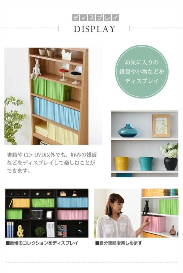 | 棚板を1cm間隔で調整できるので、本だけでなく、ディスプレイラックとして使える万能本棚。 お部屋に合わせて選べる60幅、90幅をご用意。 組み合わせて使えば、120幅、150幅としても使える大容量の文庫本ラック。 本体と上置きのセットで、本棚の上のデットスペースも有効活用! |