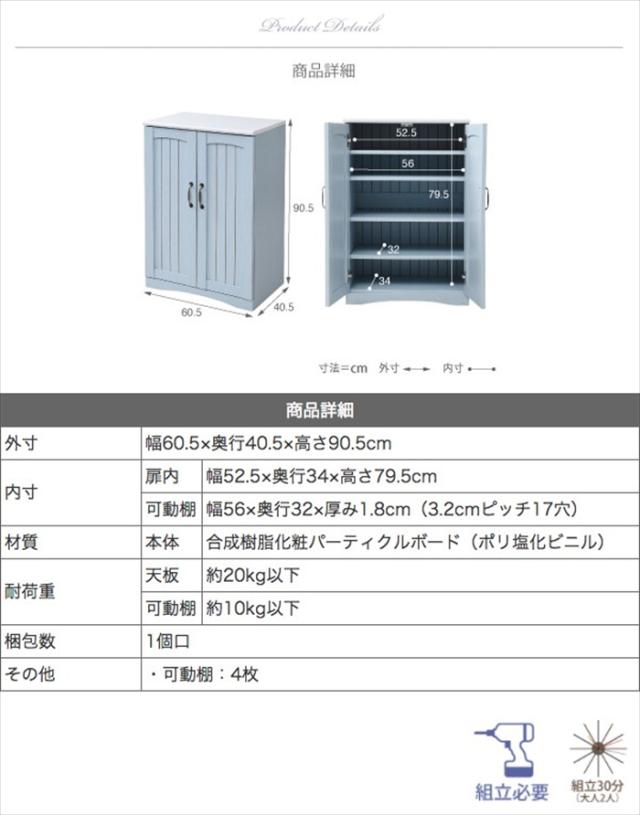 キャビネット 幅60 フレンチスタイル ブルー&ホワイト フレンチカントリー家具