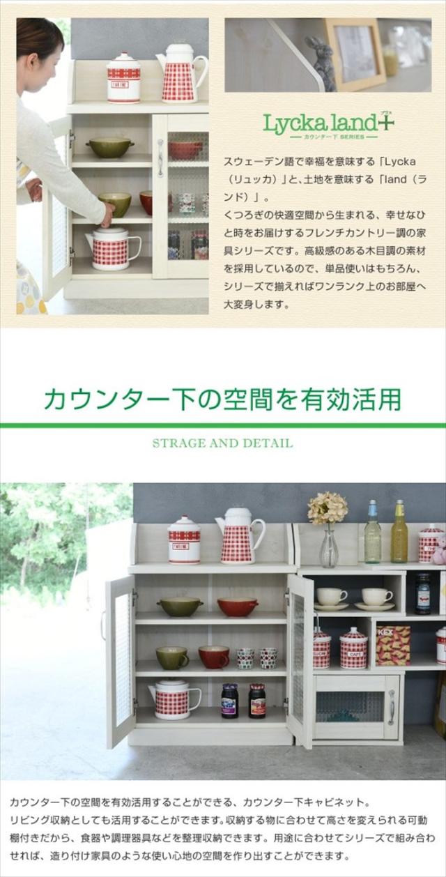 カウンター下収納 キャビネット カントリー調 薄型 高さ80 リビングキャビネット 幅60 ガラス扉 見せる収納 Lycka land