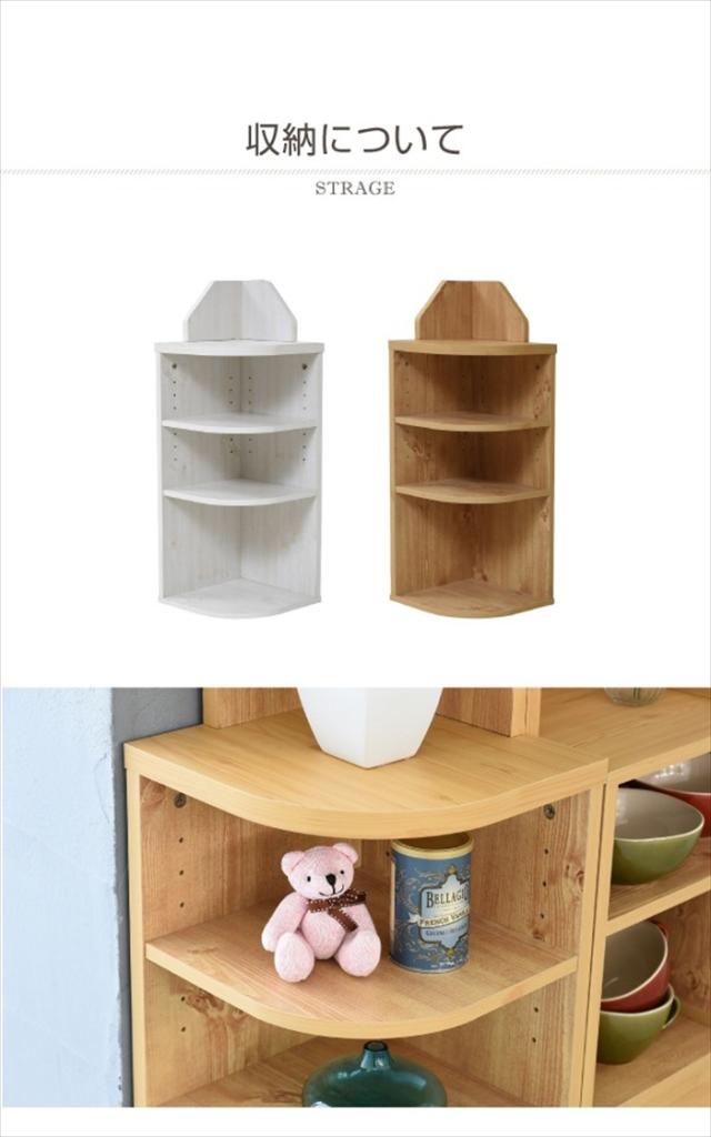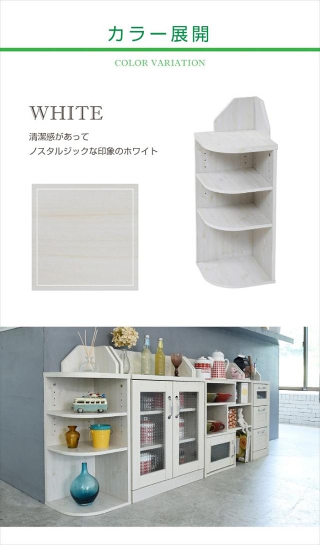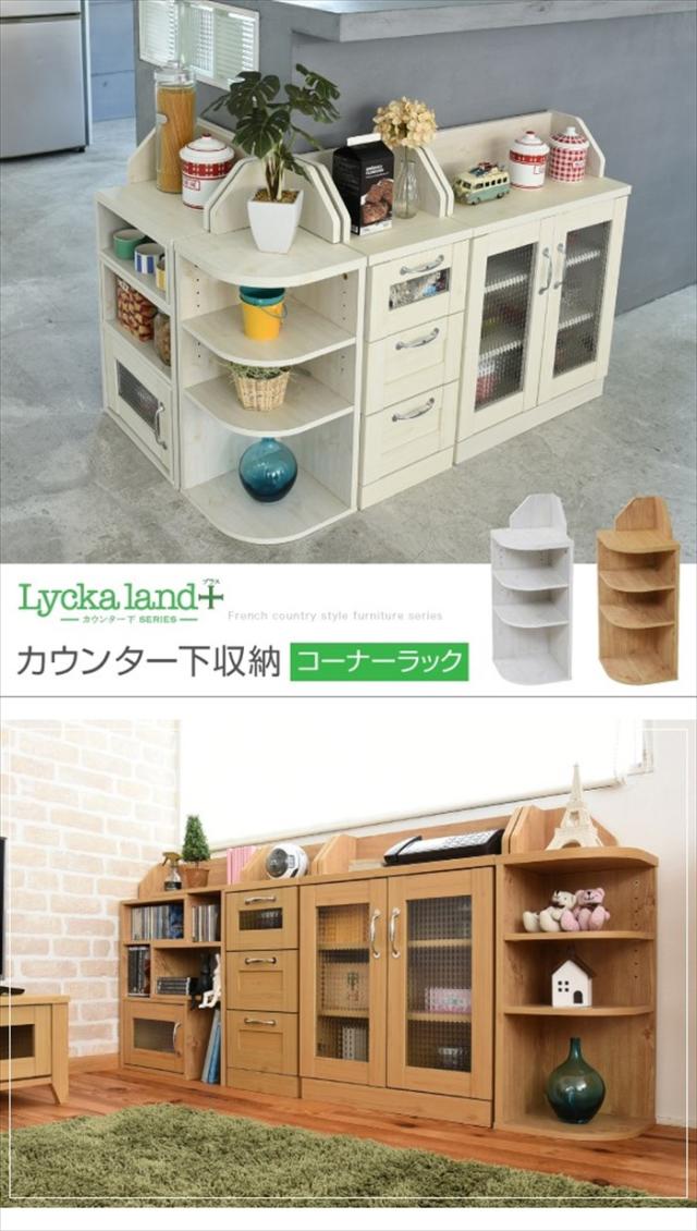 カウンター下収納 コーナーラック カントリーデザイン 三角ラック 3段 角が丸い ラック 高さ80 ダイニング収納 Lycka land