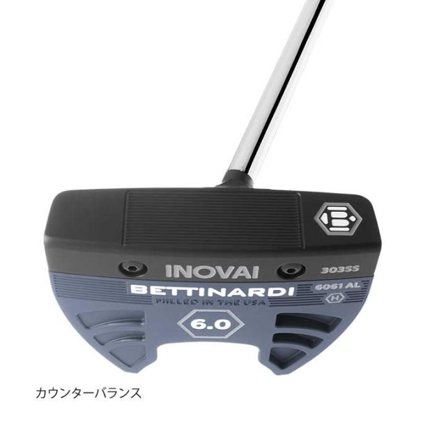 新INOVAI6.0はステップレス・ウィングデザインを取り入れたことにより、すっきりとしたモダンな印象を与え、アドレス時の視覚効果を改善することに成功しました。ソールのウィング部分に6つのポートを設け、抉り取る深さを綿密に調整することにより、フェース中心からの重心距離が従来より最大27%短縮し、安定性とパフォーマンスが向上しています。303SS製のフロントピースにはBETTINARDI独自のRoll ControlTMフェースがミーリングされ、インパクト時ボールに前方へのロール回転を与え、ボールがより早く順回転に入ることを促進します。6061ミリタリーグレードアルミナム製のバックピースの形状と重量は、インパクトフィールとコントロール性が最適化されるように設計されています。