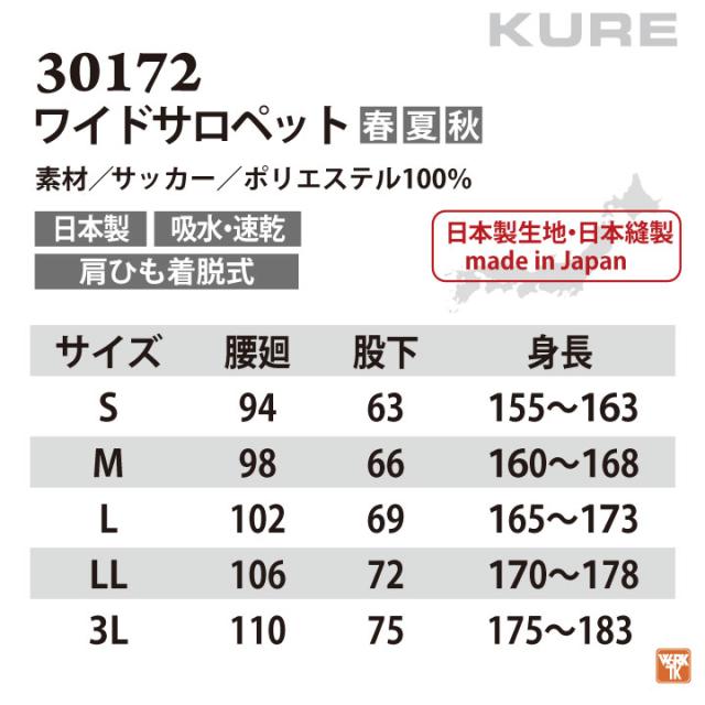 クレヒフク 30172 ワイドサロペット 日本製生地・日本縫製 凸凹のあるサッカー生地はサラリとした感触で肌触りが良く、涼しく快適な着心地。