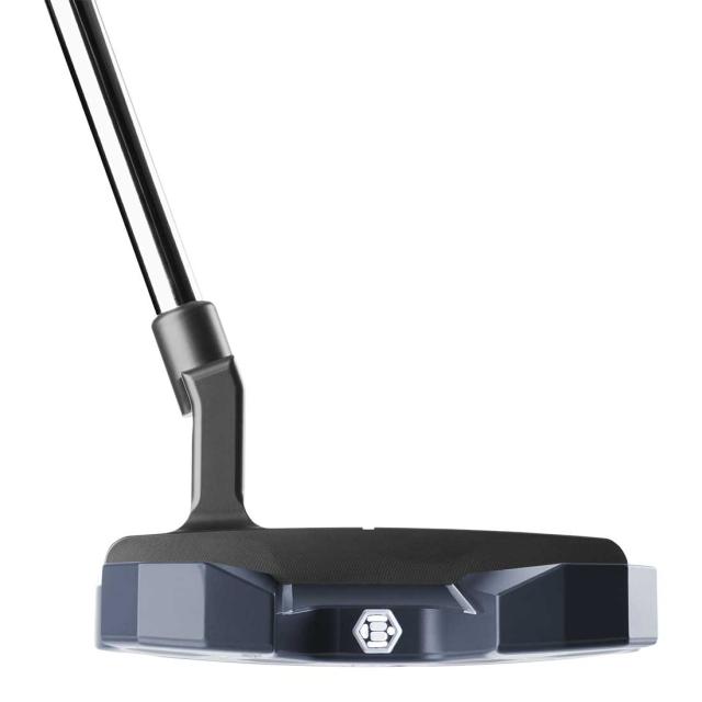 特徴的な六角形のカットアウトが作り出すふたつの刃はパターのM.O.I.(慣性モーメント)を最適化する形状になっています。6061アルミナム製のバックピースに延びる3つのサイトラインがターゲットへのエイミングとセットアップを導きます。303SS製のフロントピースにはBETTINARDI独自のRoll ControlTMフェースがミーリングされ、インパクト時ボールに前方へのロール回転を与え、ボールがより早く順回転に入ることを促進します。
