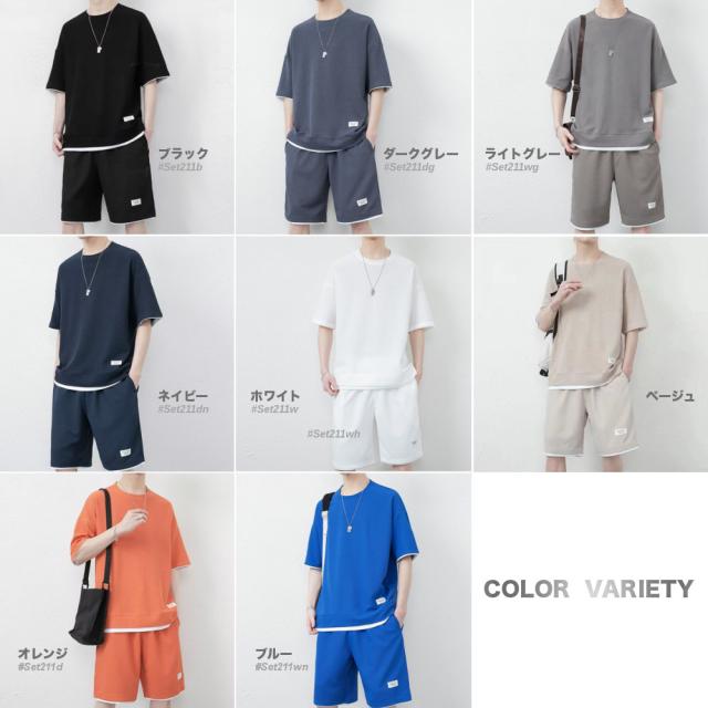 半袖 セットアップ メンズ 部屋着 ジャージ スウェット 上下セット #Set212c1 男女兼用 スポーツ 短パン トップス 無地 M便 注