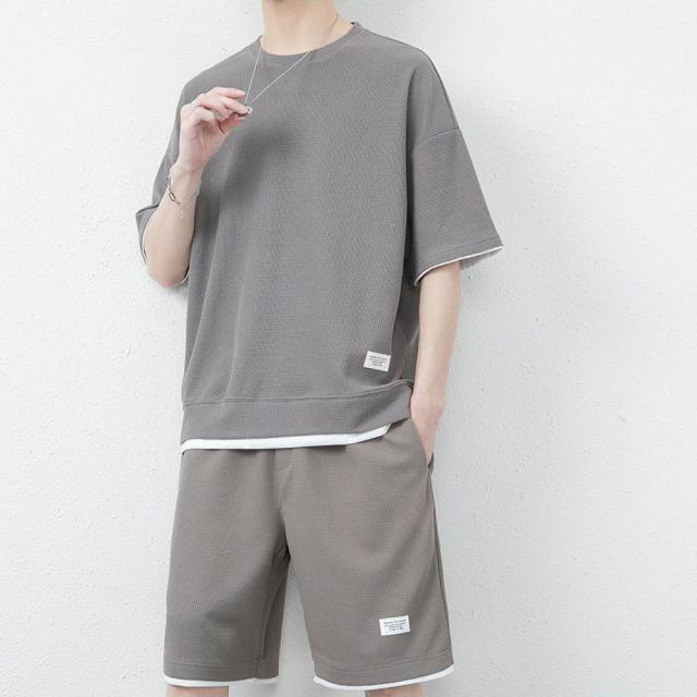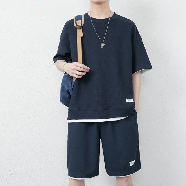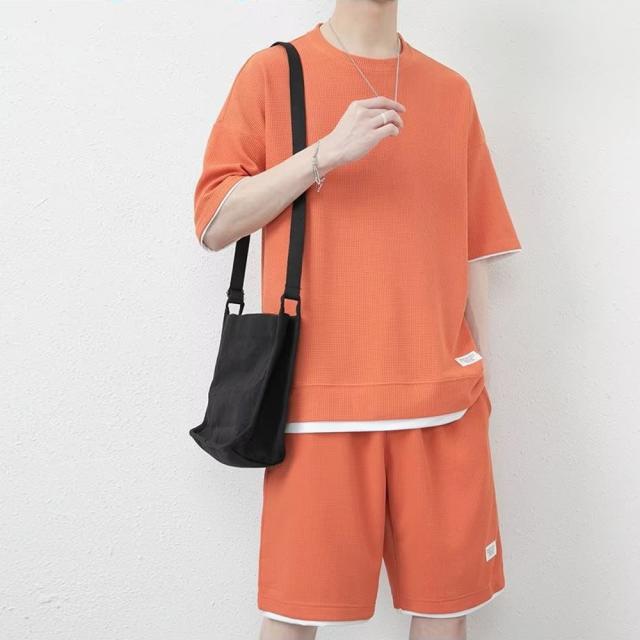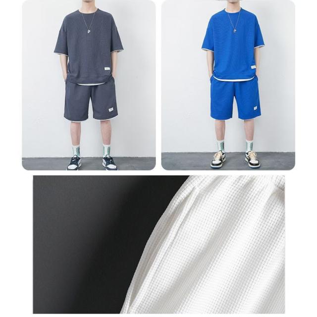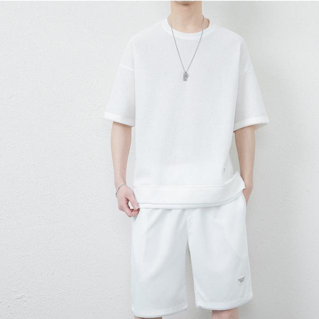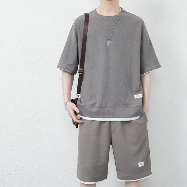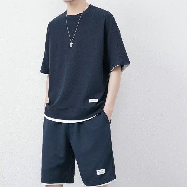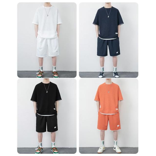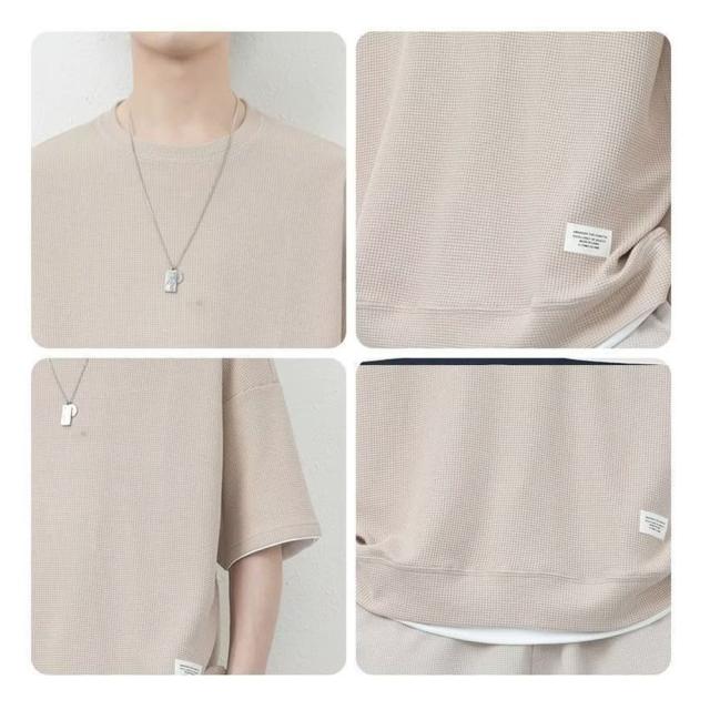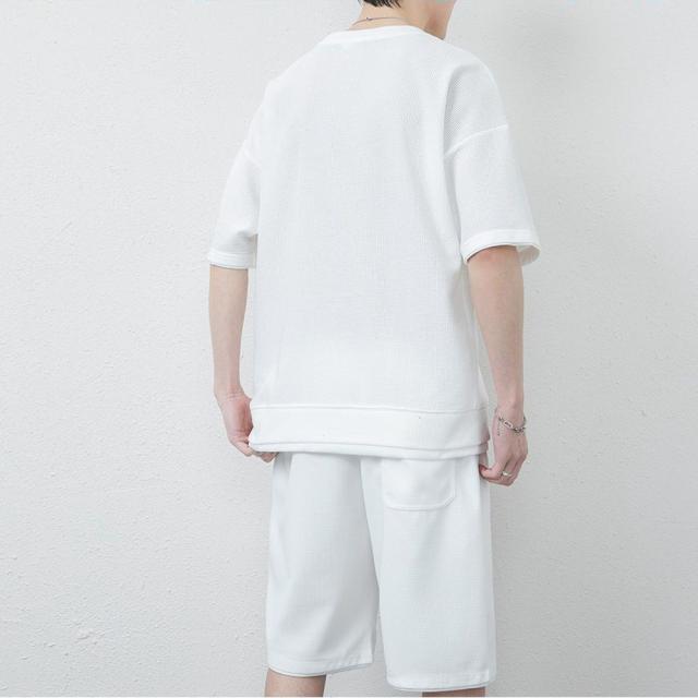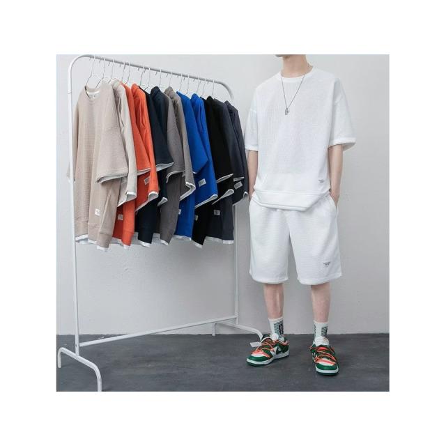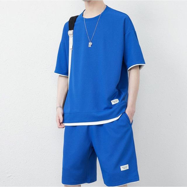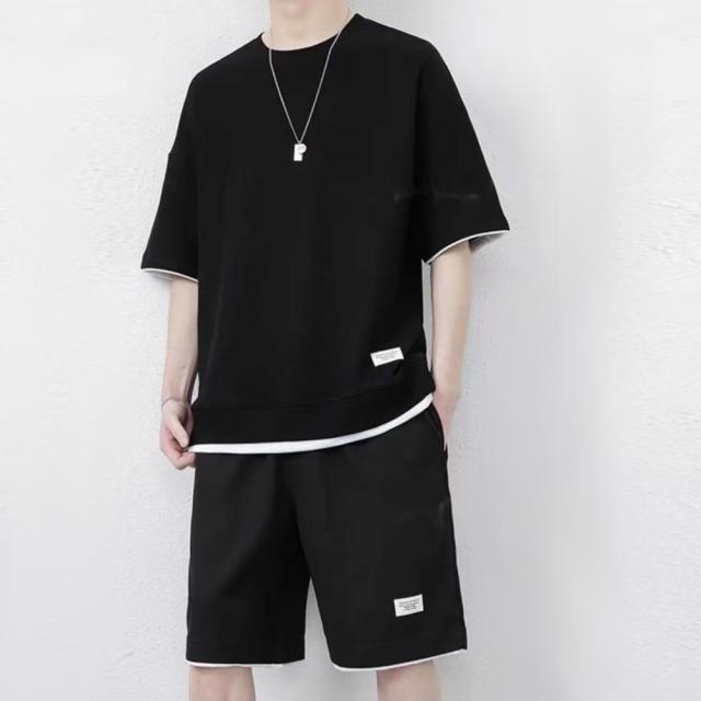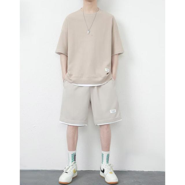 丸首 2点セット ルームウェア カジュアル トレーニング パジャマ オーバーサイズ 春夏 夏用 夏服 ショートパンツ 重ね着風