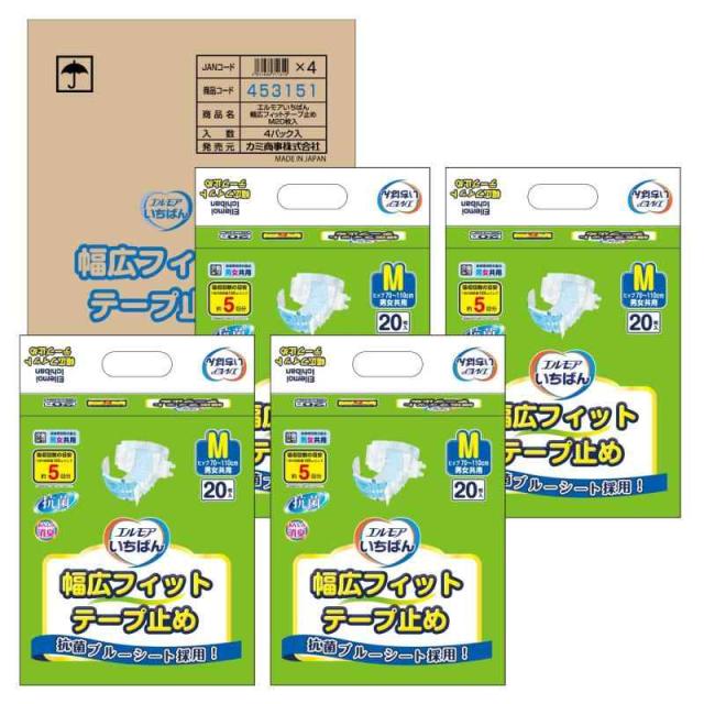 エルモアいちばん エルモア いちばん 幅広フィット テープ止めタイプ 男女共用 Mサイズ 20枚入×4