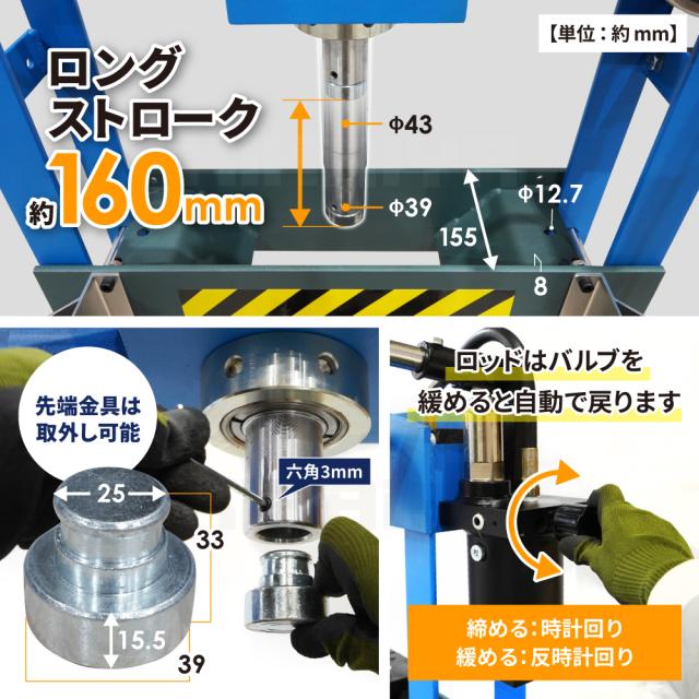 | シリンダーストローク | 160mm(1ストロークあたり約6mm) |