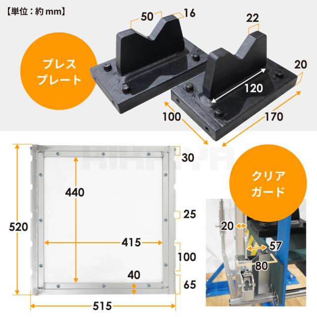 | 付属品 | クリアガード(ポリカーボネート) プレスプレート2個(鉄/*写真・黒いプレート) |