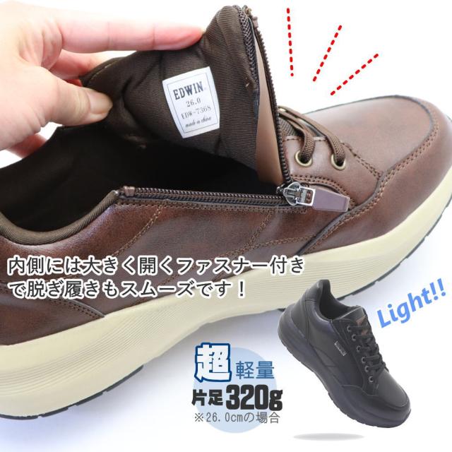 メンズ ウォーキングシューズ 蒸れない 防水 透湿 幅広 EDWIN エドウィン カジュアルシューズ スニーカー No.7368