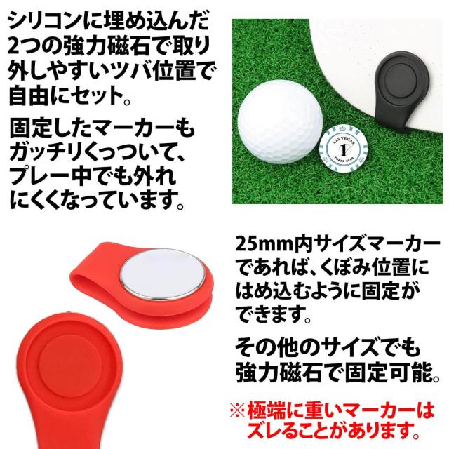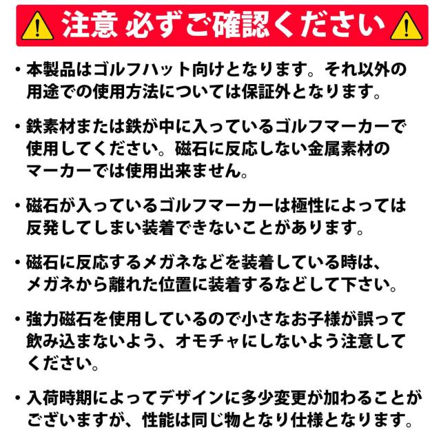 ・鉄素材または鉄が中に入っているゴルフマーカーで使用してください。磁石に反応しない金属素材のマーカーでは使用出来ません。