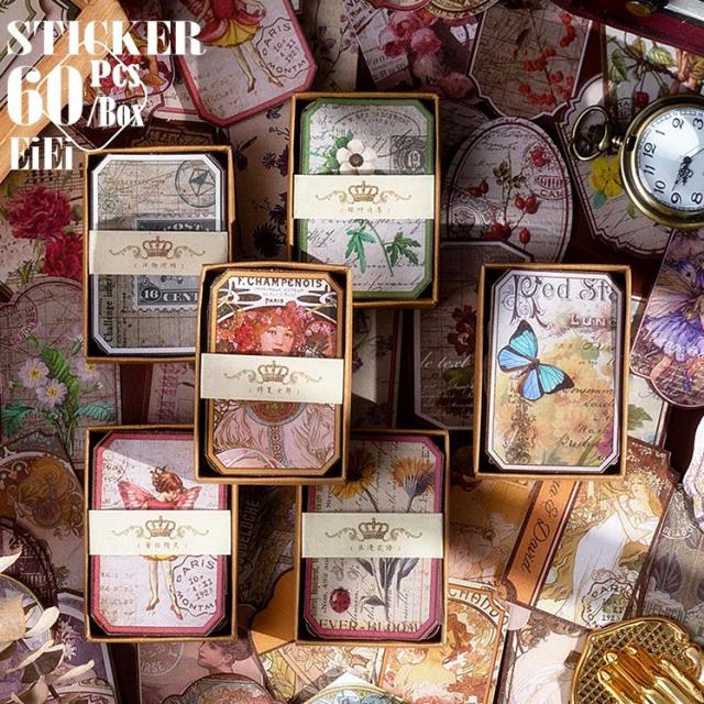 海外ステッカー 妖精 人物 ミュシャ 箱入り 手帳デコ デコレーション コラージュ 素材 アイディア アレンジ ジャンクジャーナル アンティーク レトロ 手芸 資材 素材 スマホ ハンドメイド diy DIY アンティーク レトロ 少女 女の子 花 蝶 チョウ 油絵 タグ