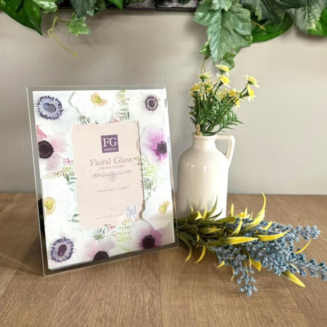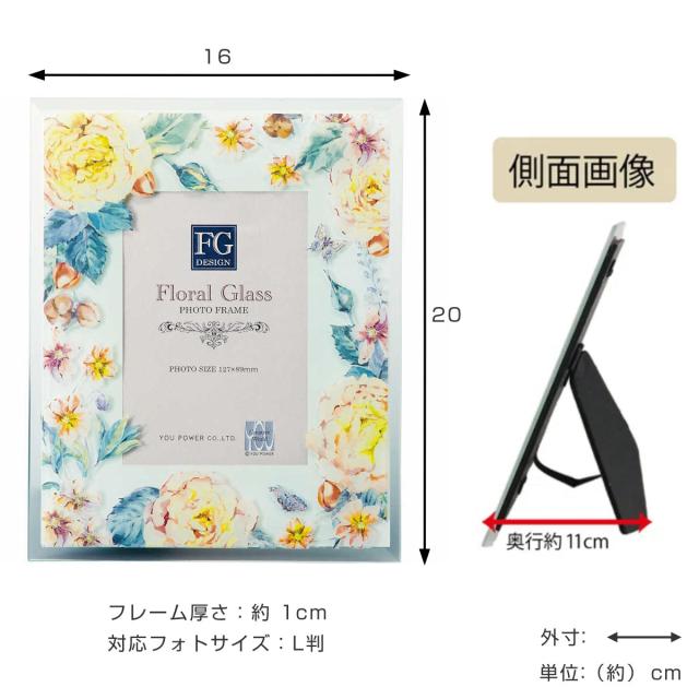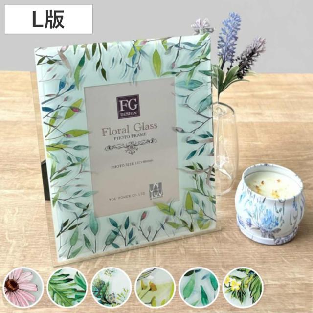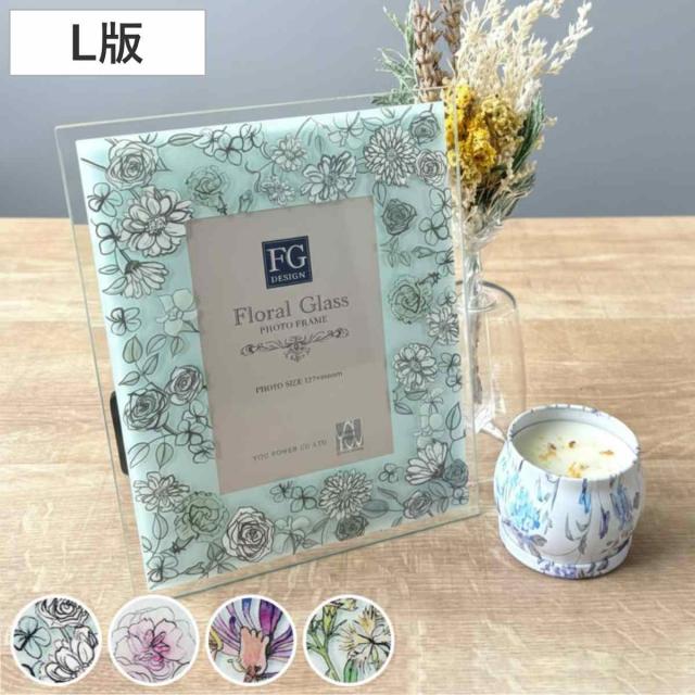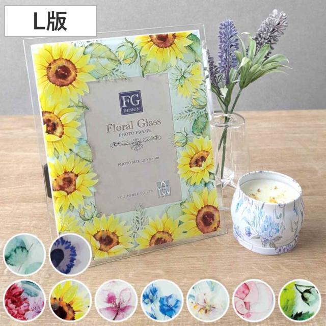 フォトフレーム FGデザイン L判 花 単種 ガラス ( フォトスタンド 写真立て 写真たて 写真入れ フォト フレーム スタンド 縦横 水彩画 フラワー l判 写真フレーム アートフレーム 卓上 おしゃれ かわいい プレゼント お祝い 透明感 )
