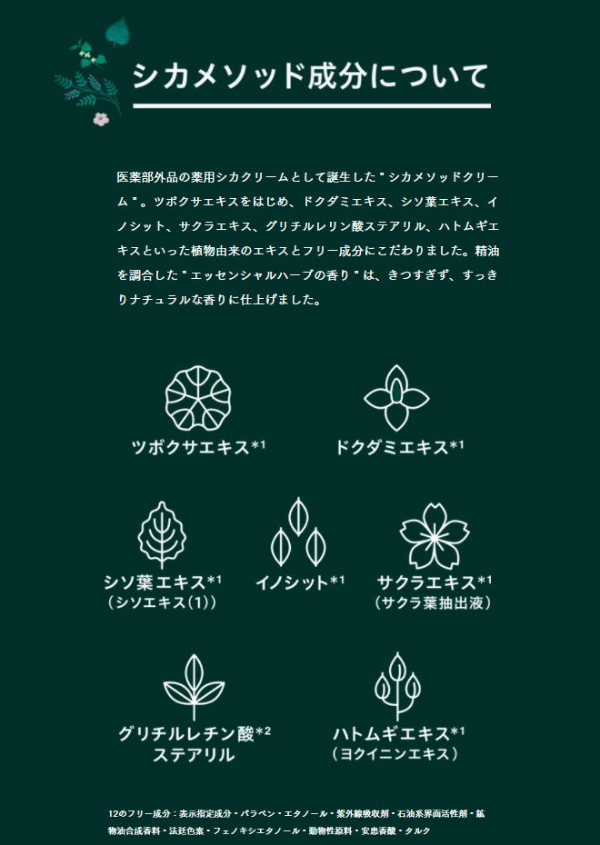 韓国で人気の「シカクリーム」が日本独自処方の医薬部外品クリームになって登場!韓国シカクリームのコンセプト成分「ツボクサエキス」と、日本古来の植物エキスを配合しました。肌なじみのいいテクスチャーで使いやすく、肌に保護膜を形成し、外部刺激から肌を守ります。【内容量】100g【成分】●有効成分:グリチルレチン酸ステアリル【区分】日本製・医薬部外品【メーカー】株式会社コジット