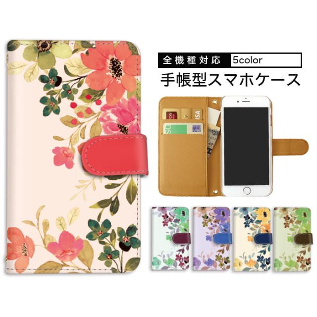 スマホケース 手帳型 全機種対応 水彩 花 花柄 携帯ケース AQUOSsense4ケース SO-01L SC-51C SOV33 SH-54B SH-M16 スマホケース 手帳 Pixel 4a Pixel 6 Pro SHG10 SHG06 SH-M09 カード収納 カード収納ストラップ SCV43