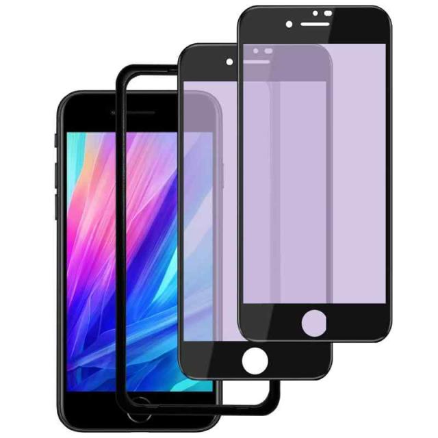 DXFAU 【2枚セット】 強化ガラスフィルム iPhone SE第3世代 / SE第2世代 iPhone 8/7用 ブルーライトカット 4.7インチ対応 全面保護フィルム 液晶画面 ガイド枠付き 貼り付けは簡単