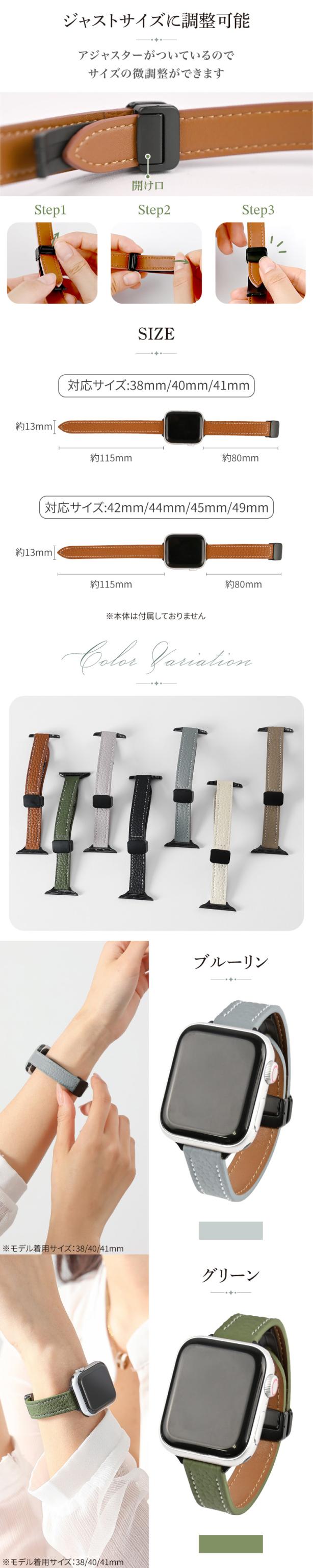 アップルウォッチ バンド レザー 本革 AppleWatch 45mm ベルト マグネット バックル 41mm 40mm 44mm 38mm 42mm 49mm スリムベルト series11 series10 SE SE3 Ultra Ultra2 Ultra3 series9 series8 series7 series6 series5 | 交換 スマートウォッチ 腕時計 替えベルト