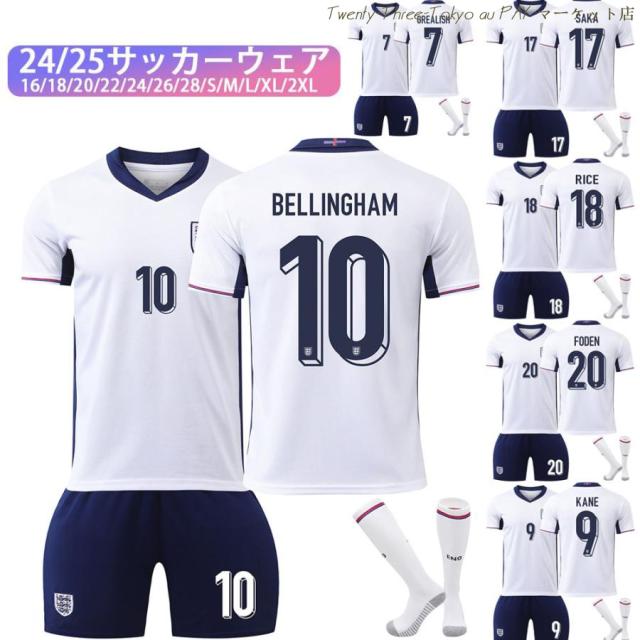 送料無料 サッカーレプリカユニフォーム 24-25イングランドホーム サッカーウェア セット 背番号7/9/10/17/18/20 子供 大人 ユニフォーム ソックス付き 半袖