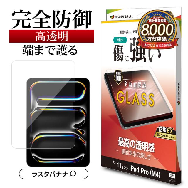 iPad Pro (M5) (M4) 11インチ ガラスフィルム 全面保護 高光沢 高透明 クリア ホコリ防止 0.33mm 10H 保護フィルム GP4252IP11 ラスタバナナ
