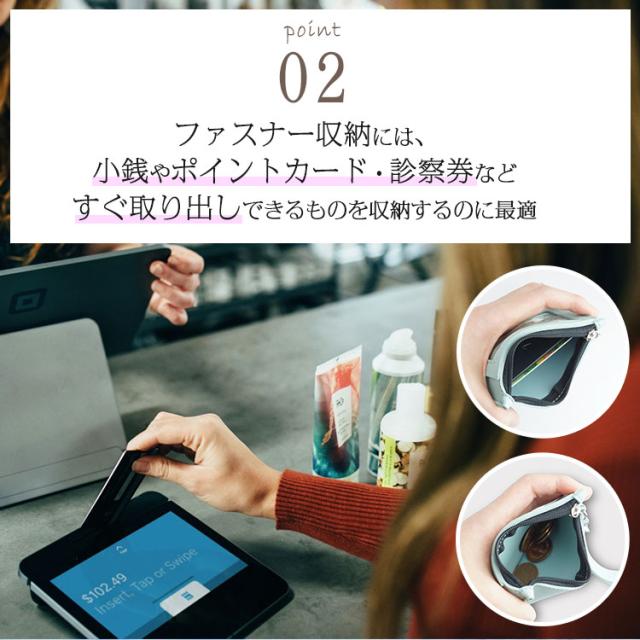 小銭やカード、小物類も楽々収納可能