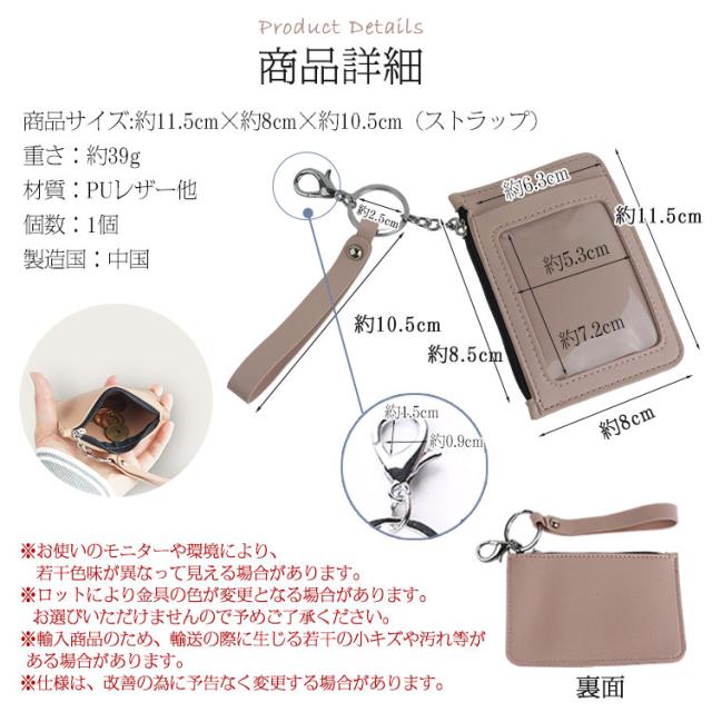 パスケース ICカード 小銭入れ 定期入れ コインケース カラビナ ストラップ付き カード入れ ミニ財布 ファスナー スリム 軽量 おしゃれ シンプル コンパクト 通学 通勤