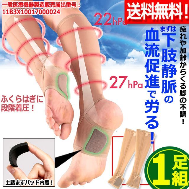 ふくらはぎを段階着圧!一般医療機器製造販売届出番号:11B3X10017000024