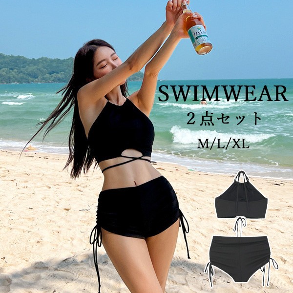 水着 レディース ビキニ 2点セット おしゃれ かわいい 綺麗 クロスバンド 無地 ブラ シンプル ショーツ ベーシック ナチュラル アースカラー 流行 ホルターネック 20代 30代 40代 ママ水着 黒 リゾートウェア ビーチウェア インスタ映え 韓国水着 テントサウナ df098zbzbjc