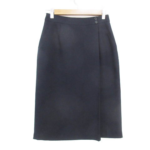 【中古】ナチュラルビューティーベーシック フレアスカート ミモレ丈 無地 M 紺 ネイビー /FF22 レディース