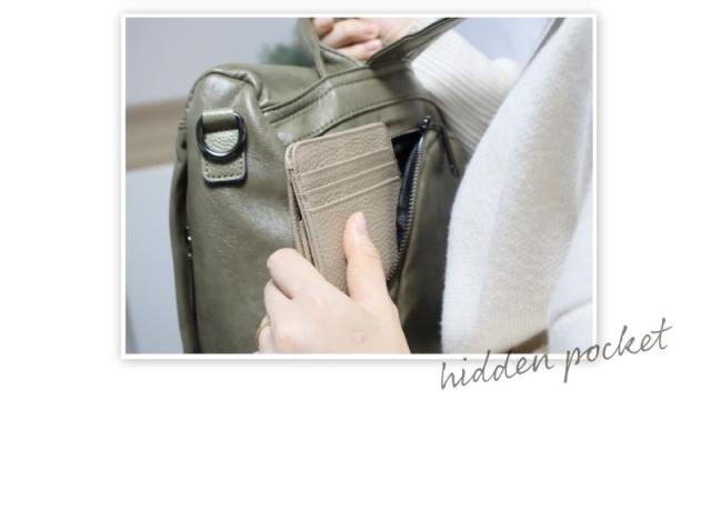 ●両サイドにある2つの隠しポケットのファスナーも隠されているため、旅行や外出時で盗難防止に役立ちます。