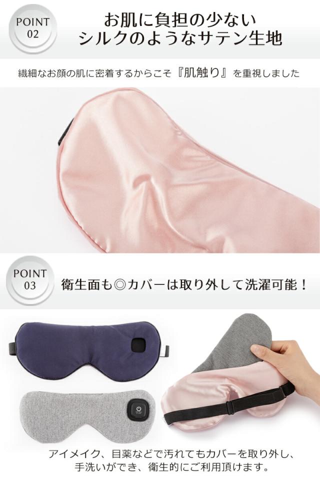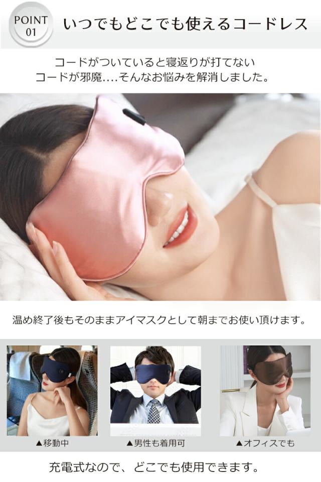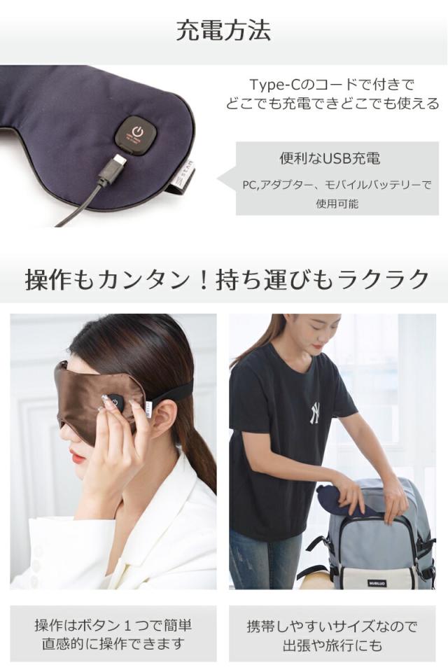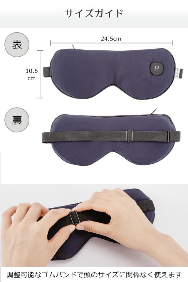 40〜50度の2段階あたためモードで疲れた目元を温めリラックスできるアイマスクです。普段から目をよく使う方、目元が疲れやすい方ににおすすめです。