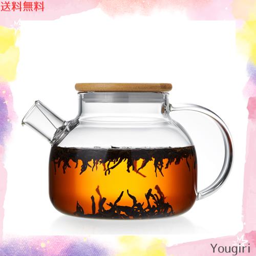 大容量透明急須ティーポット、直火対応、丸型、新しいデザインスプリングのよなステンレス茶こし付き、片付け便利