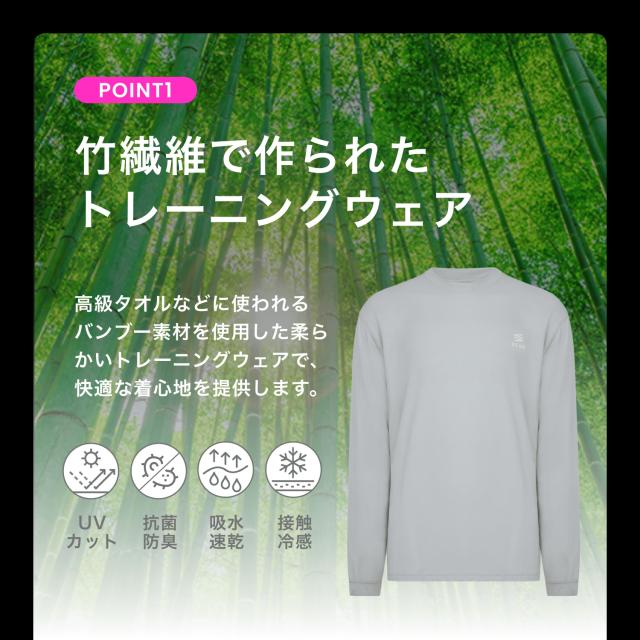 高級タオルなどに使われるバンブー素材を使って作れられたトレーニングTシャツです。シルクのようなやわらかい着心地の真新しいトレーニングウェアをぜひ一度お試しください。