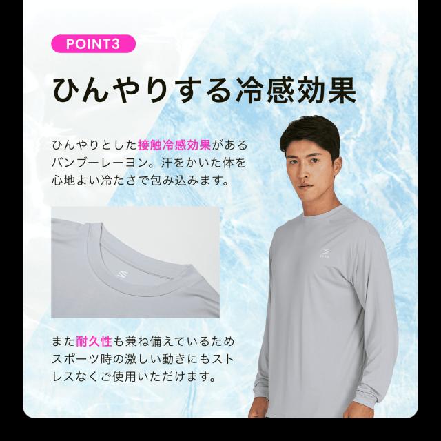 バンブーレーヨンには、ひんやりとした接触冷感効果があるため、心地よく冷たい手触りになっています。スポーツ時の汗ばんでほてった体をひんやり包みこみます。